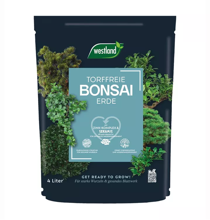 Die torffreie Bonsai Erde von Westland ist ein innovativer Erdenmix, der nicht nur den Miniaturbäumchen gut tut, sondern – durch den Verzicht auf Torf – auch Mooren und Klima. Mit ihrer einmaligen Zusammensetzung aus Kokosfaser, kompostierter Rinde, West+ Faser und SERAMIS® bietet diese auf Bonsai abgestimmte Mischung optimale Bedingungen. Ein erhöhter Kokosfaseranteil sorgt für noch bessere Durchlässigkeit der bereits luftigen, lockeren Struktur. Dadurch werden die Wurzeln geschützt und eine sehr gute Versorgung mit Sauerstoff sicher gestellt. Gleichzeitig ist die Oberfläche des Substrates weniger attraktiv für Trauermücken. Für eine ausreichende Wasserversorgung der Pflanzen enthält die torffreie Bonsai Erde das bereits bekannte West+ Wassermanagement und SERAMIS® Pflanz-Granulat, welches Wasser und Nährstoffe speichert um sie bei Bedarf wieder an die Pflanze abzugeben.