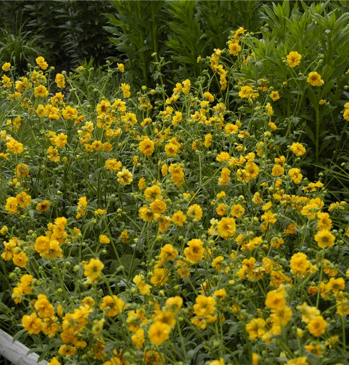 Die Chilenische Nelkenwurz 'Goldball' (Geum chiloense) ist eine aufrechte, wintergrüne Staude, die von Juni bis August goldgelbe, schalenförmige Blüten bildet. An einem sonnigen bis halbschattigen Standort mit durchlässigem, nährstoffreichem Boden erreicht sie gewöhnlich eine Höhe von ca. 60 cm und wird ca. 50 cm breit. Die Chilenische Nelkenwurz 'Goldball' ist gut frostverträglich.