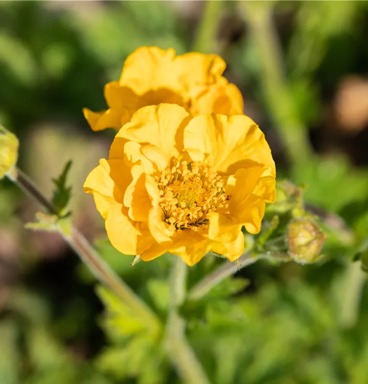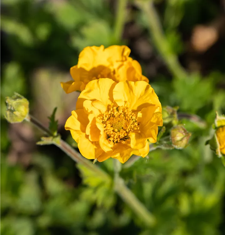 Geum chiloense 'Goldball' bildet schalenförmige, goldgelbe Blüten ab Juni.