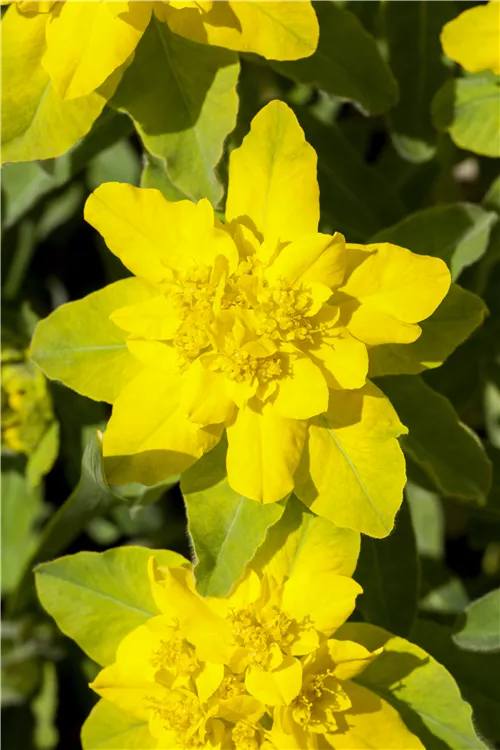 Die Gold-Wolfsmilch (Euphorbia polychroma) ist eine aufrechte Staude, die von Mai bis Juni gelbe Blüten mit einem angenehmen Duft bildet. Ihre lanzettlichen Blätter sind mittelgrün. An einem sonnigen Standort mit durchlässigem, kalkhaltigem Boden erreicht sie gewöhnlich eine Höhe von ca. 40 cm und wird ca. 40 cm breit. Die Gold-Wolfsmilch ist gut frostverträglich.