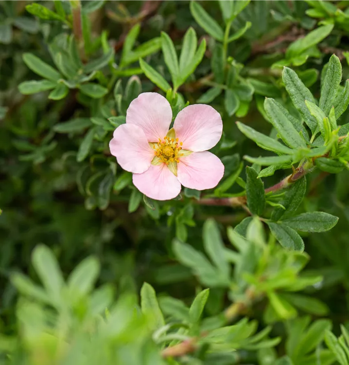 Potentilla fruticosa 'Pink Queen' ist ein Flachwurzler und bildet, je nach Boden, fein verzweigte Wurzeln.