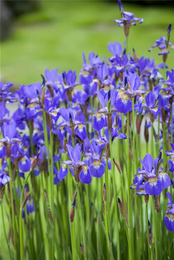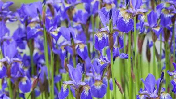 Ganz das Gegenteil von diesem Knalleffekt bewirkt die Farbe Blau. Ihre Kühle erzeugt Weite und schenkt Ruhe. Tiefe Blautöne vermitteln Vertrauen und signalisieren Verlässlichkeit. Große Flächen können auch Sehnsüchte wecken und einen Hauch von Mystik mit sich bringen, zum Beispiel wenn der Blaustern sich weitläufig durch den Steppengarten ausbreitet. Schwertlilien und Herbstastern sind mit herrlichen blauen Blüten vertreten und bieten viele Möglichkeiten für Beete und Rabatten. Wunderbare ruhige Inseln dazwischen entstehen mit dem Blauschwingel. Eine Kombination mit Weiß erfrischt und entspannt zugleich, zum Beispiel in der ganz einfachen Zusammenstellung von blauem und weißem Rittersporn. Ein Zusammenspiel mit der komplementären Farbe Gelb bringt spannenden Kontrast ins botanische Geschehen. Mädchenauge und Sonnenhut bieten sich hier an.