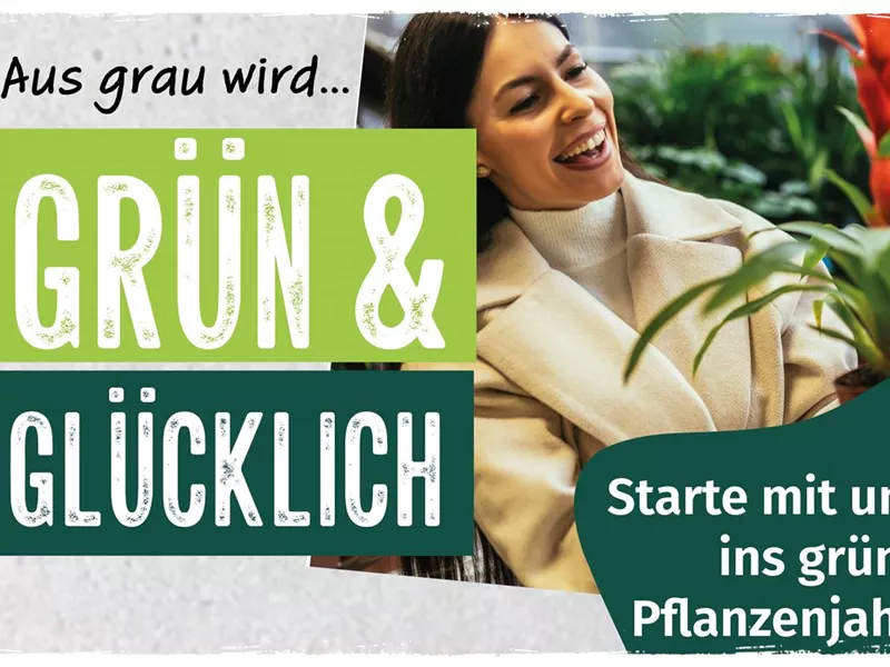 Mit unserer Kampagne „Aus grau wird… GRÜN & GLÜCKLICH“ laden wir dich ein, dein Zuhause neu aufblühen zu lassen. Ob pflegeleichte Grünpflanzen, dekorative Zimmerpflanzen oder echte Statement-Pieces für Wohnzimmer, Büro oder Küche – bei uns findest du Pflanzen, die zu deinem Alltag passen.